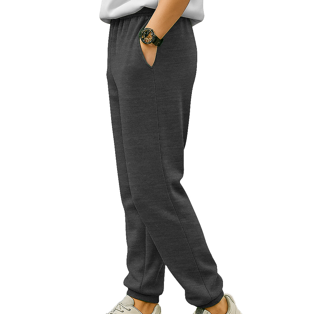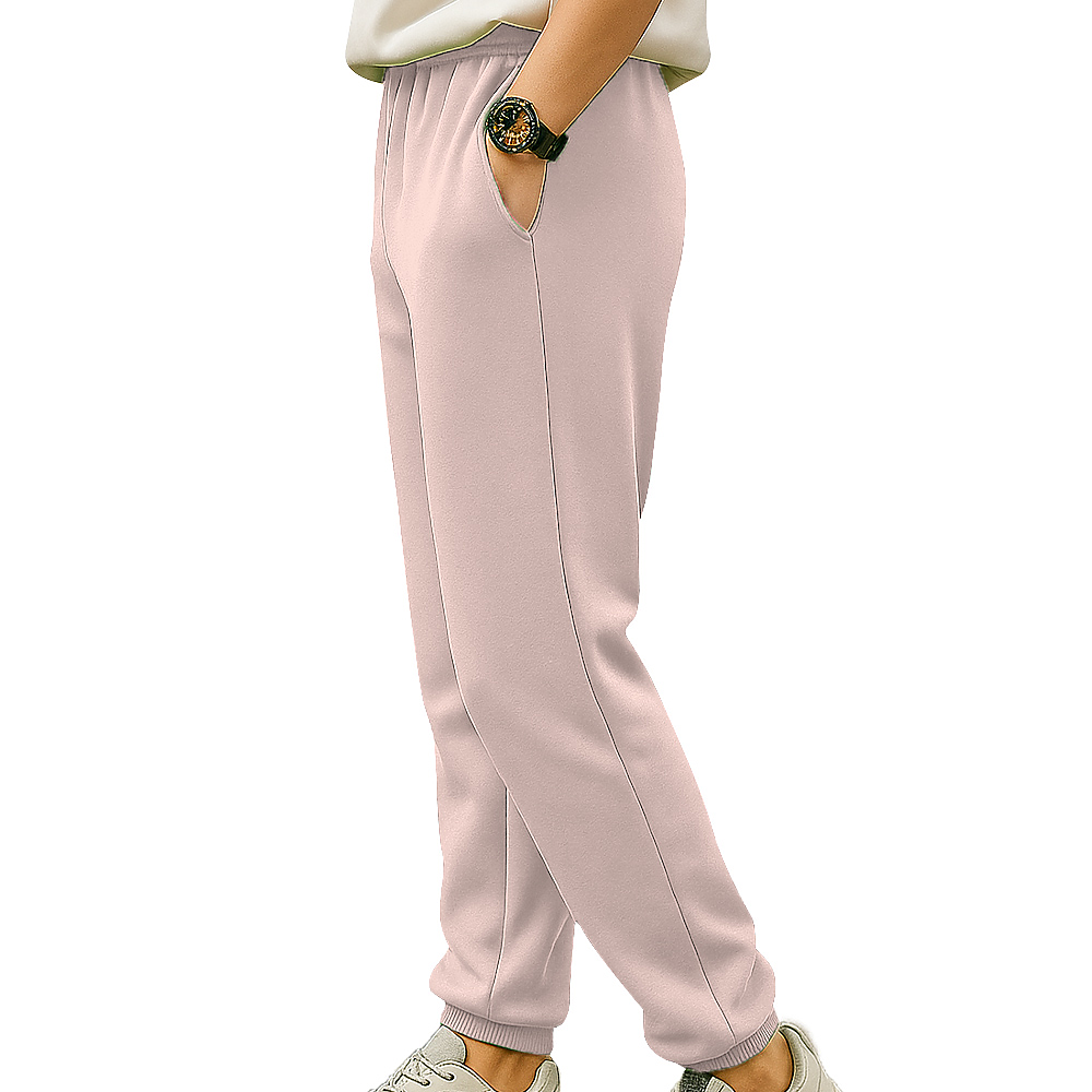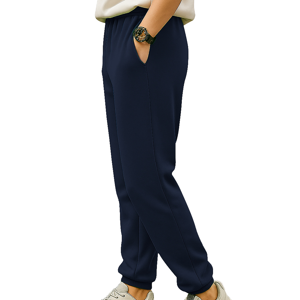 100% cotton face. 30s combed face. 1x1 ribbed cuffs. Elastic self waist - band, Tear-away booklet label. Side pockets.