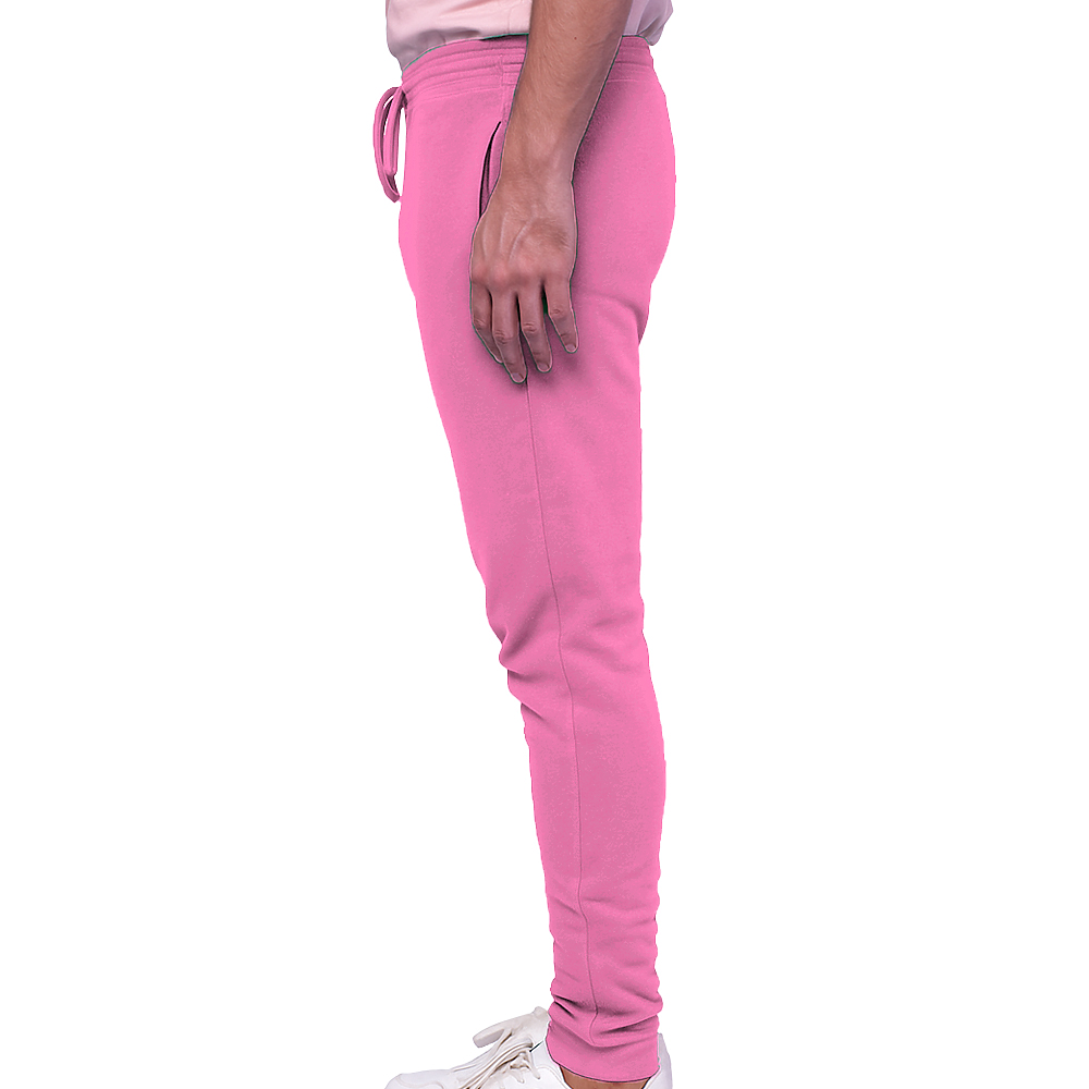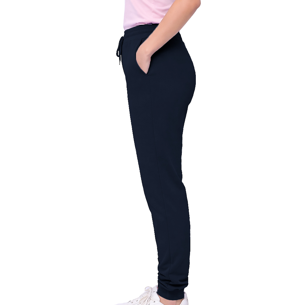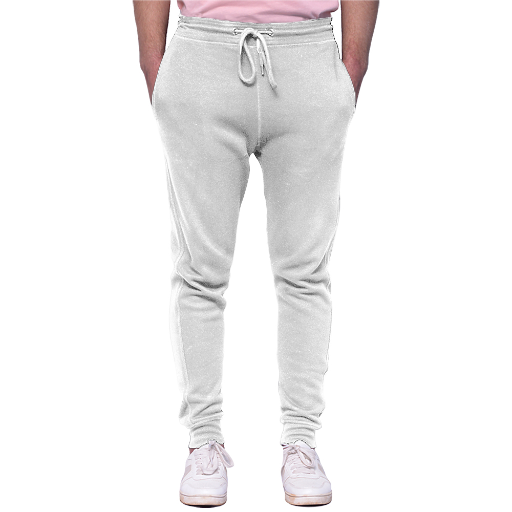100% cotton face. 30s combed face. 1x1 ribbed ankle cuffs. Elastic waistband. Tear-away booklet main label. Side pockets.